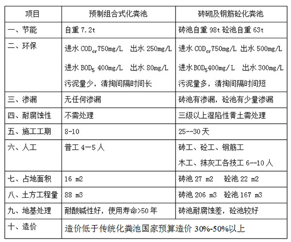 通過以上對比分析可見采用預制組合式化糞池不僅施工方便,安裝靈活,而且成本低,利于環保,彌補了傳統化糞池的所有缺點,它將給我們帶來經濟效益和社會效益,**滿足現階段城市發展要求,會在一兩年內創造化糞池的革*新時代。
