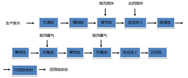 廢水→預(yù)處理→收集→預(yù)處理→(A/O)n生化處理→沉淀→達(dá)標(biāo)排放